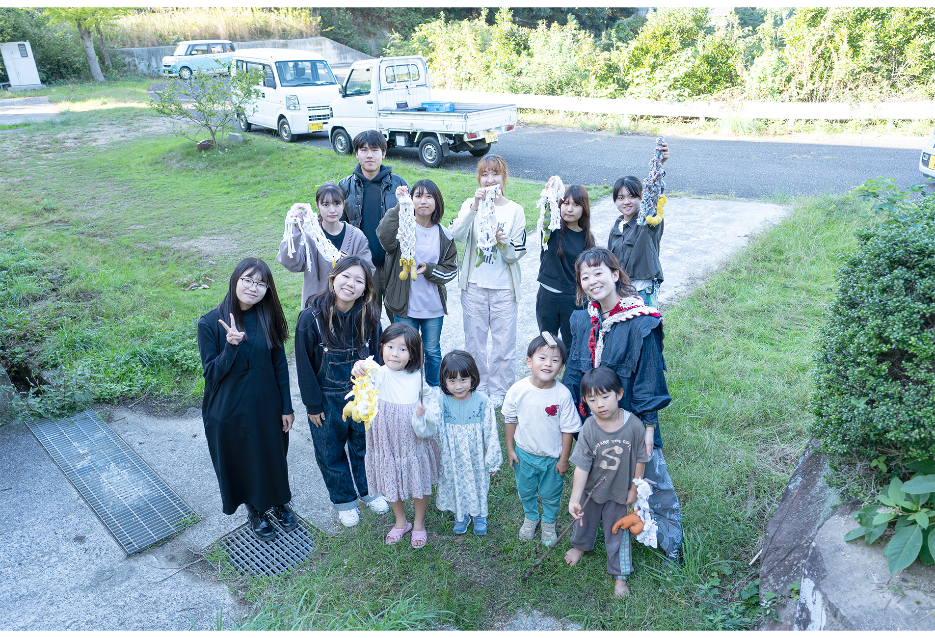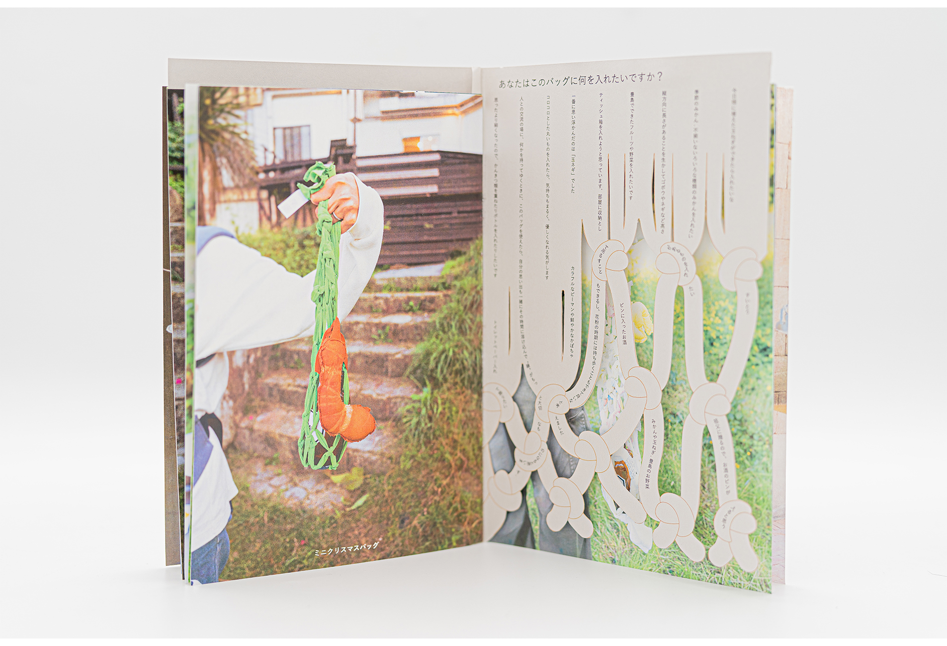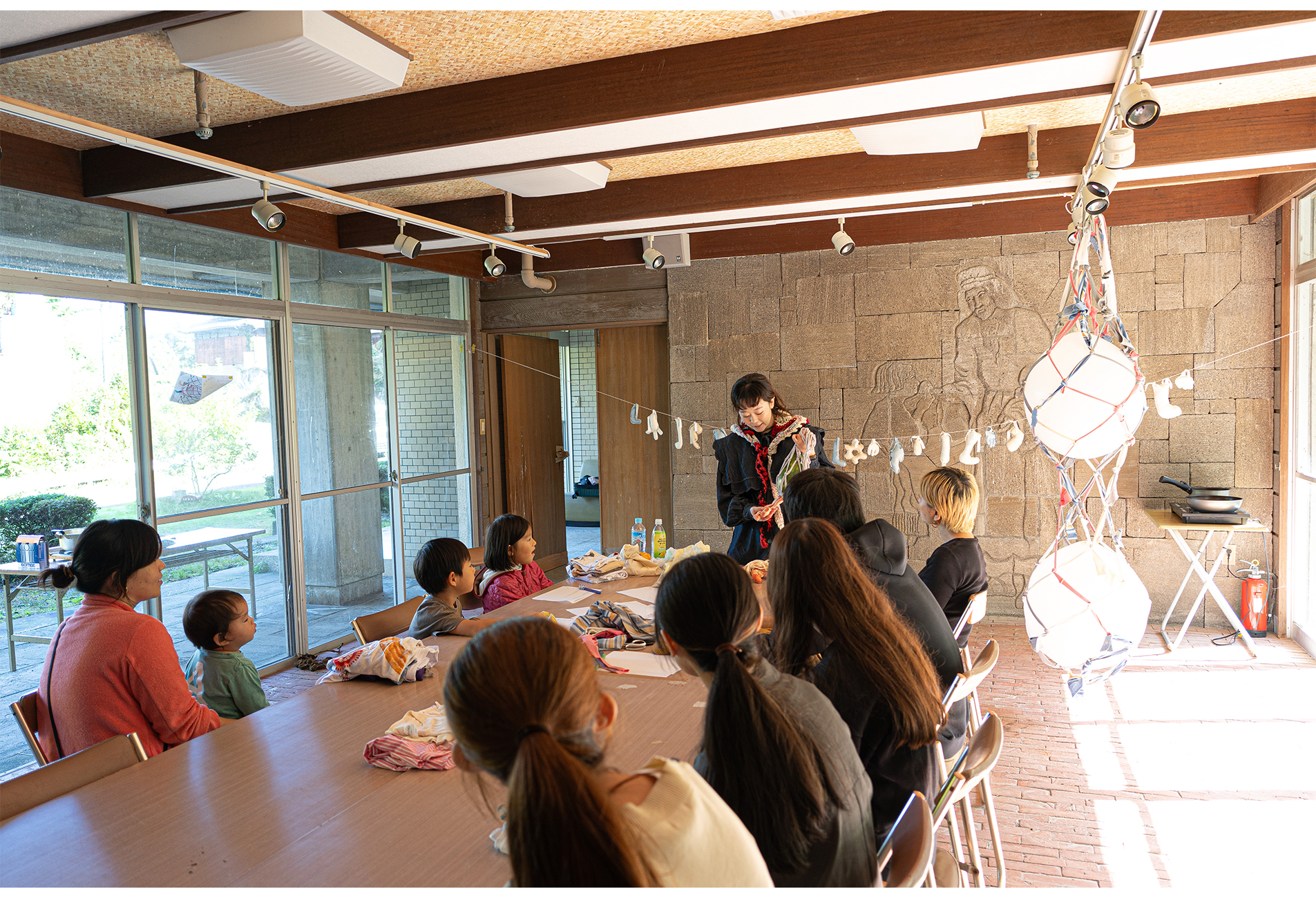 PORTFOLIOSITE Details Workshop 2024 香川県、豊島、ShinAiKanにて「洋服のぬけがらからつくるワークショップ」を開催しました. 参加者の方々にそれぞれ着なくなったTシャツを持参してもらい、それを裂き、編み、バッグにするワークショップ. 会場となったShinAiKanは、のちのち、料理を持ちよる食堂になる予定だとかそこへ集う際のみんなが使うバッグになれば良いなという願いを込めて. 記録としてブックも制作しました. Next